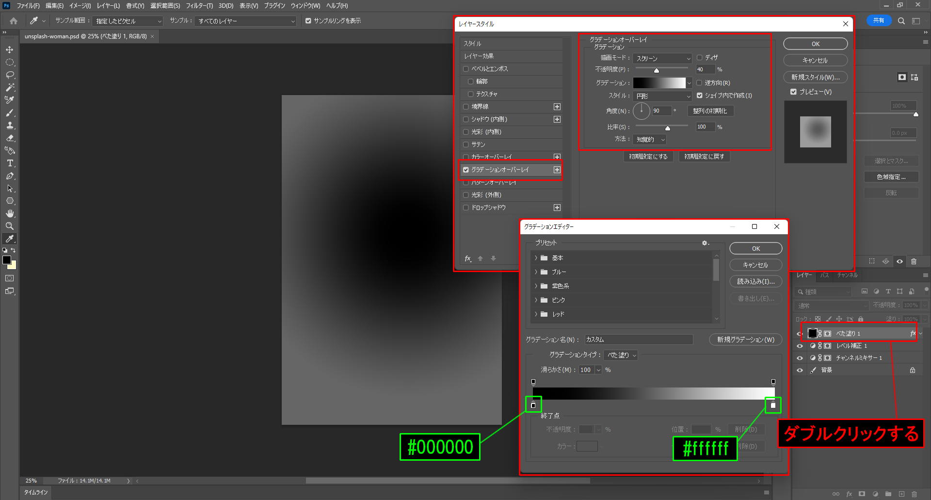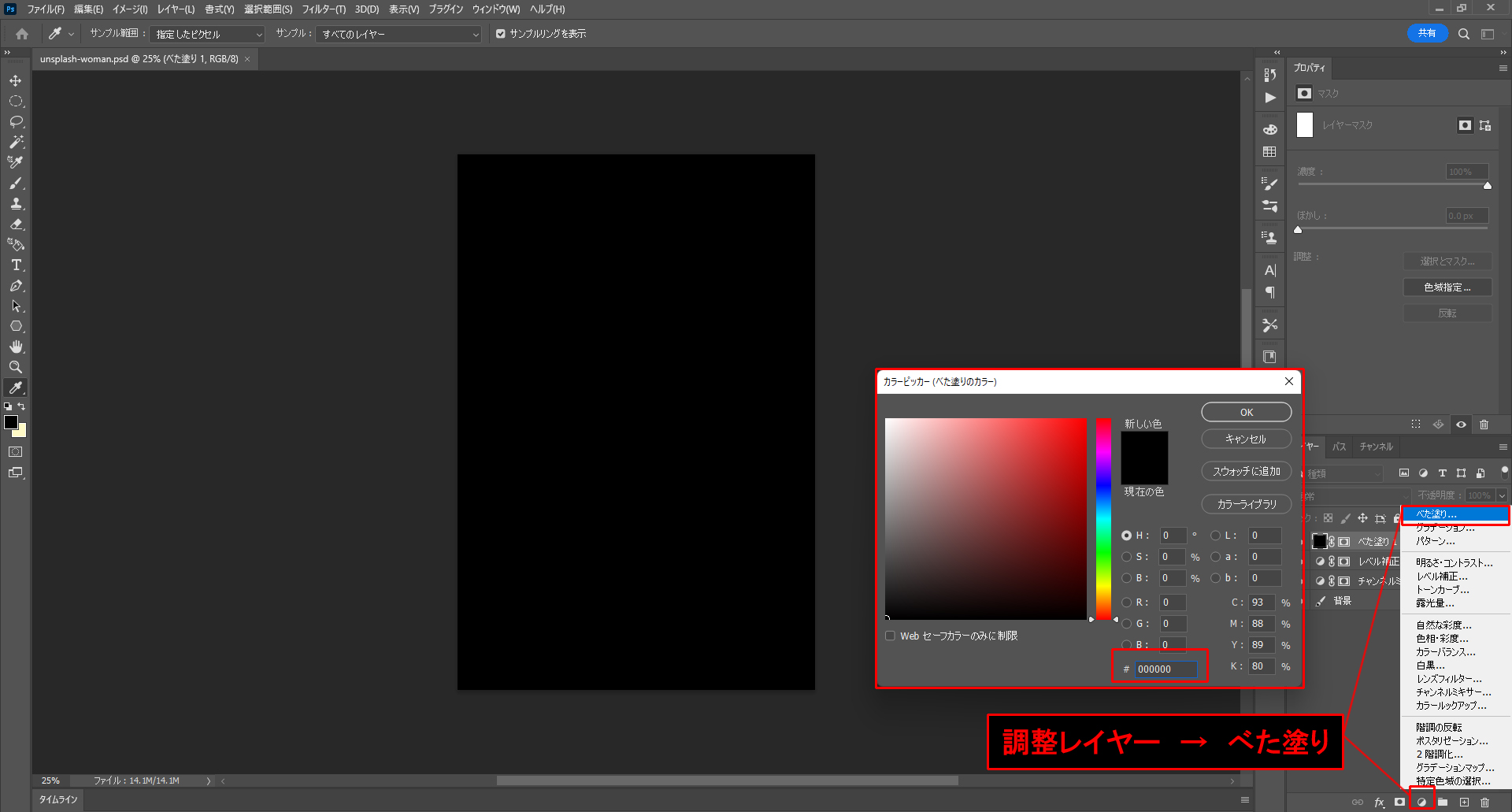 - べた塗りレイヤーの描画モードをスクリーンにします