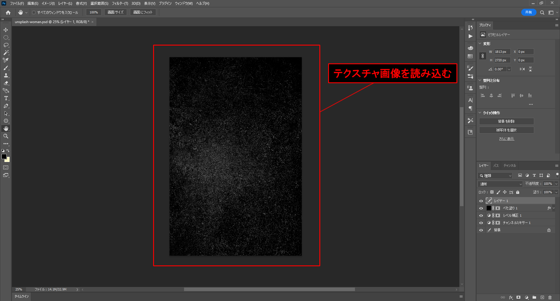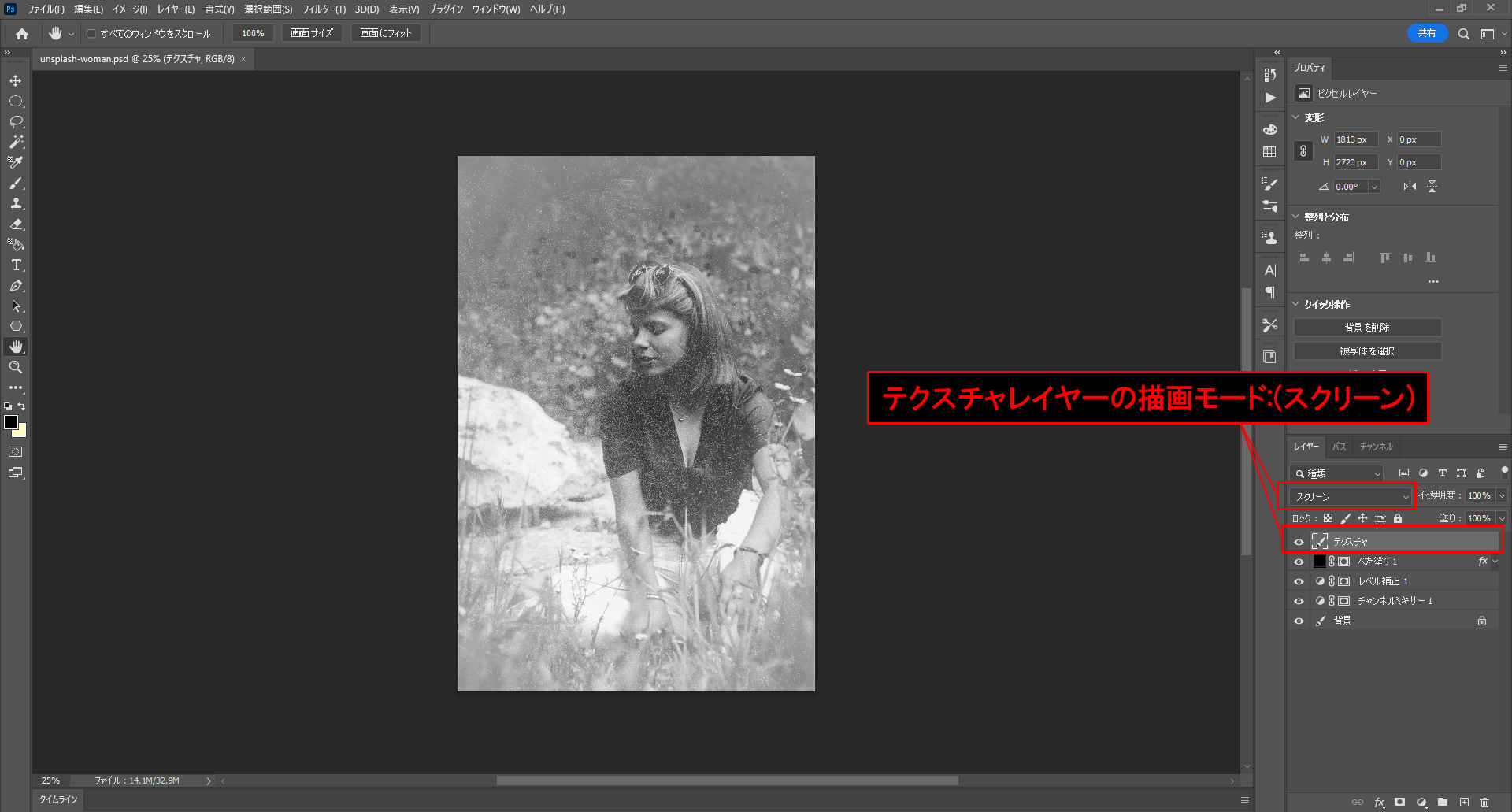 - テクスチャレイヤーの描画モードをスクリーンにします