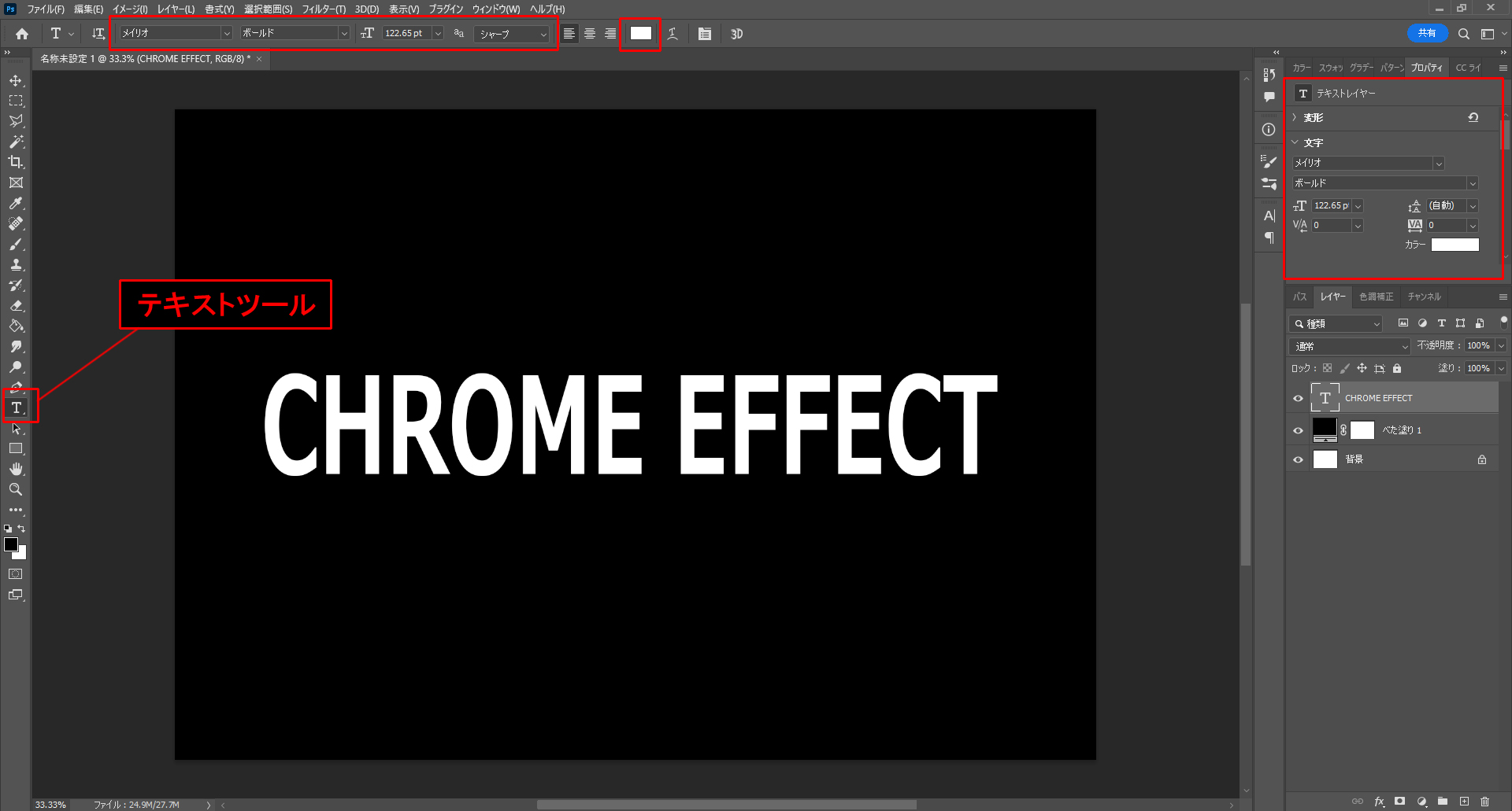 この記事では、テキストツールの文字を金属加工する方法を紹介します。