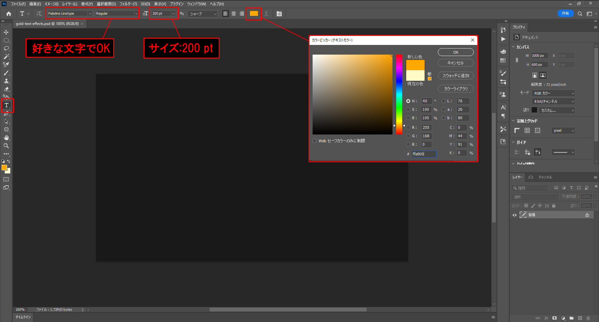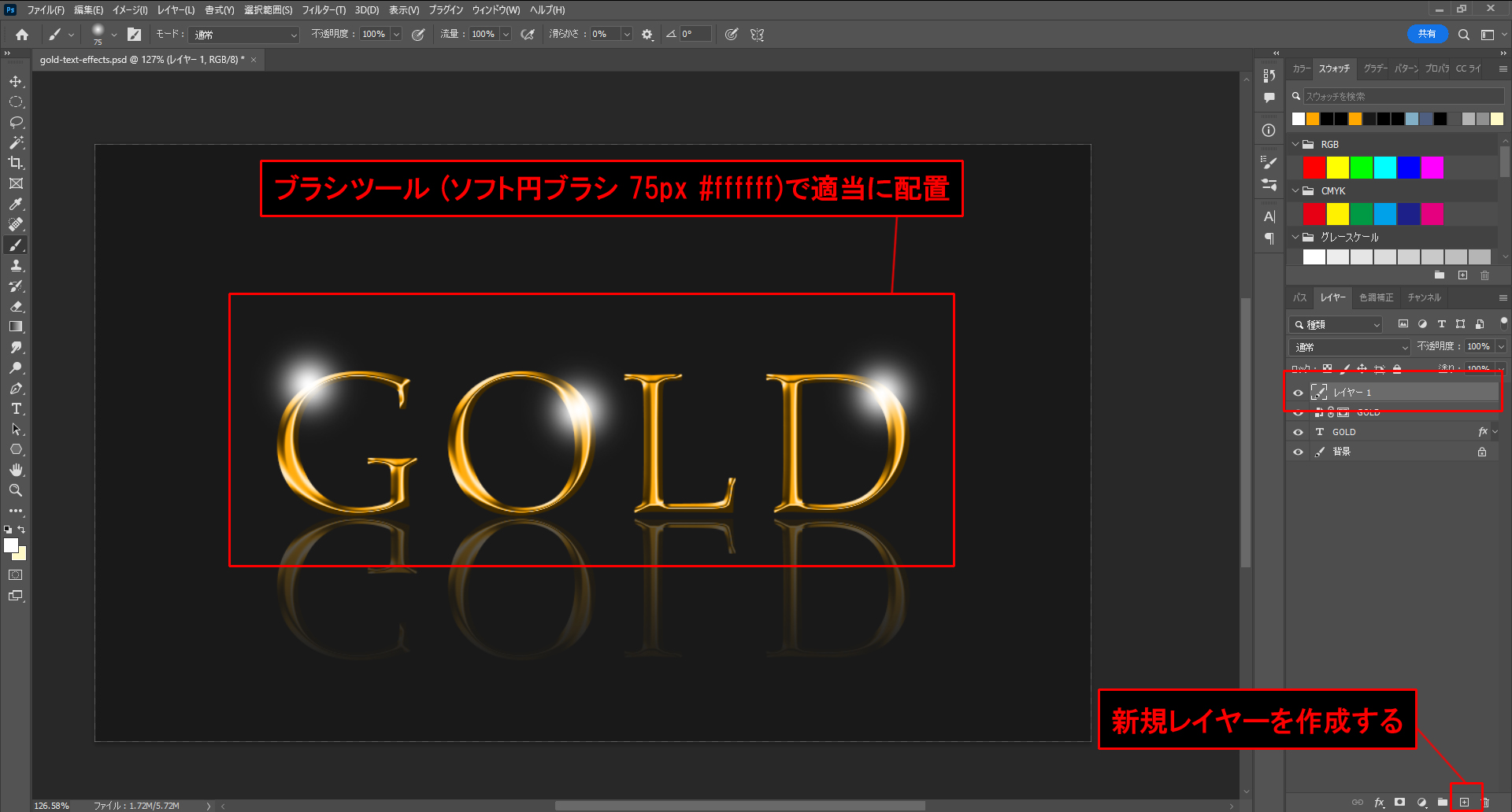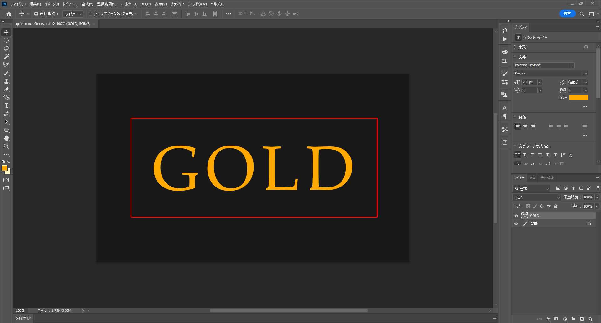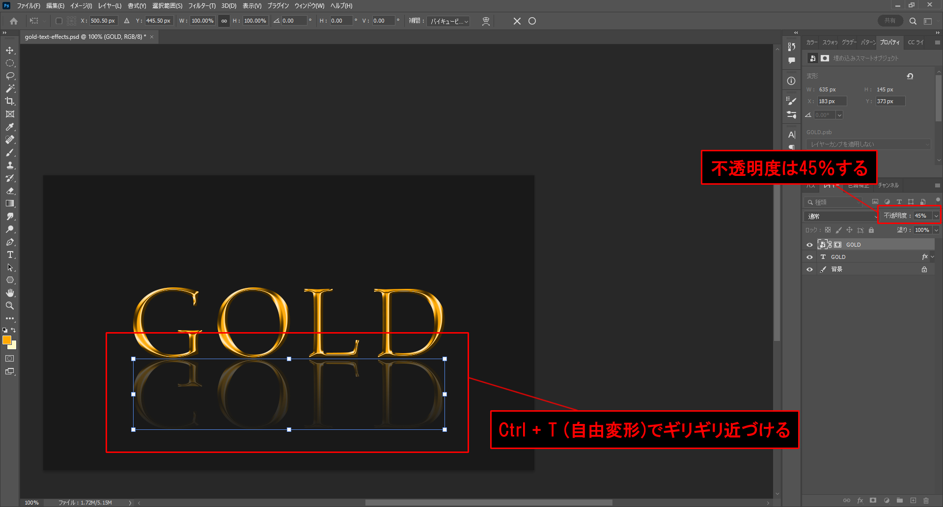 - Ctrl + T 自由変形で元のGOLDテキストレイヤーに近づけてください