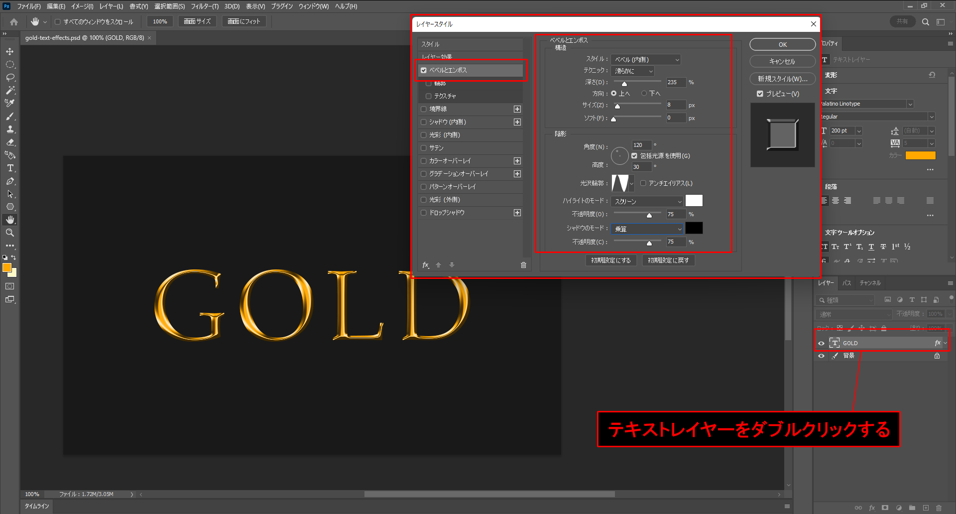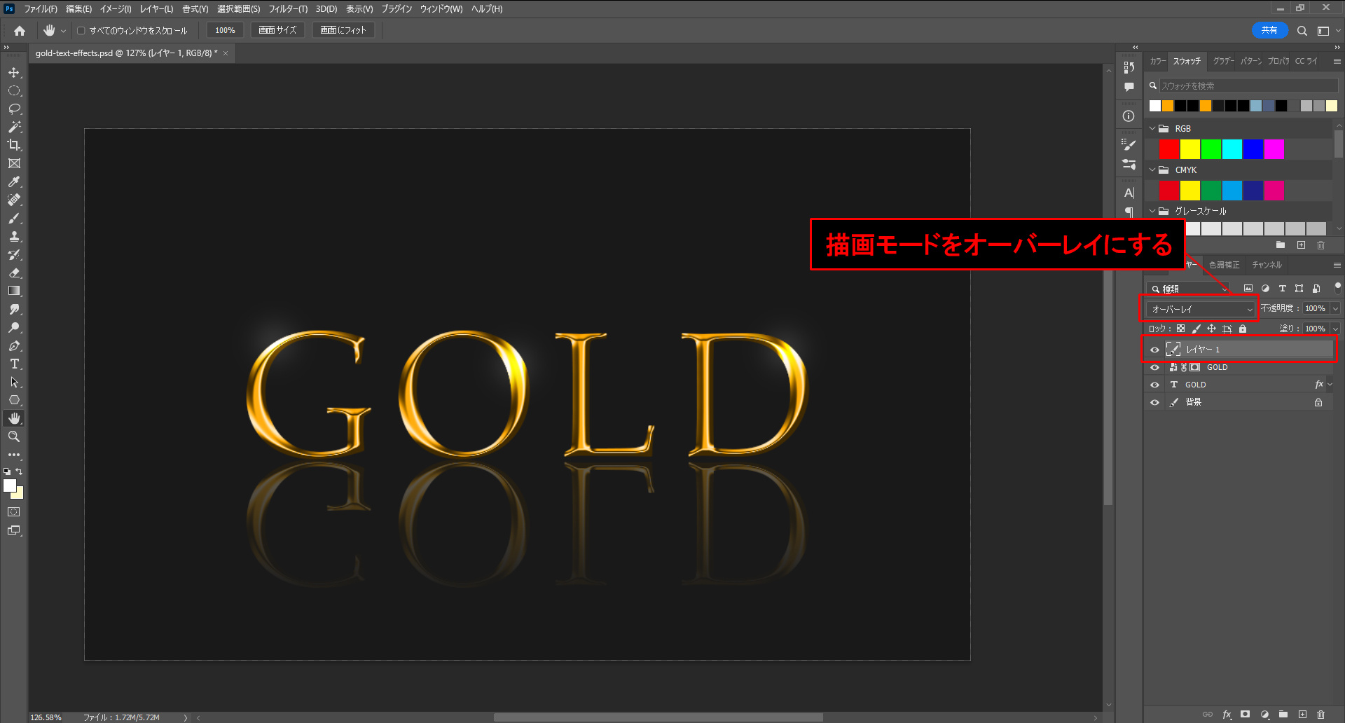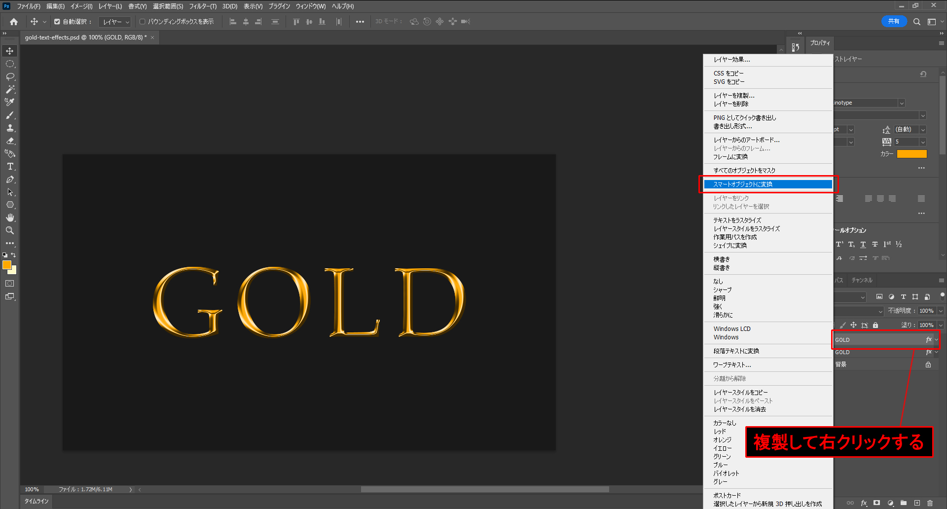 - GOLDテキストレイヤーを複製します (Ctrl + J)